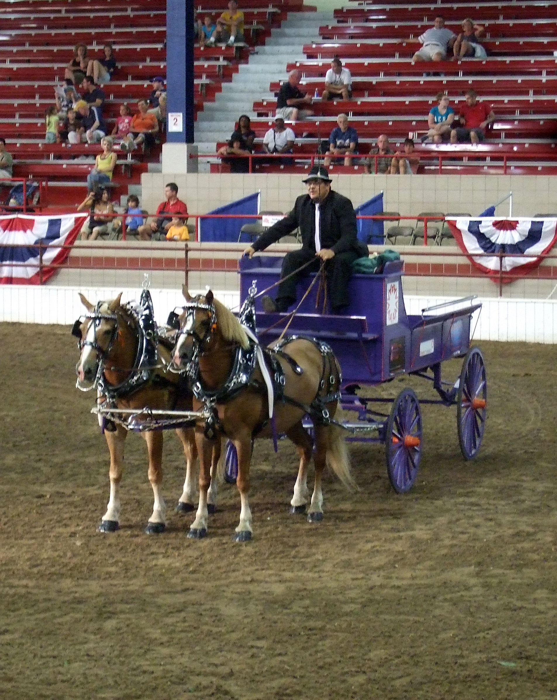 We left the Dairy Cattle Barn and walked across to the Toyota Coliseum where the horse show was in progress. Miniature horses pulling carts walked and trotted around the arena. The drivers were dressed in whimsical outfits and the event had a fairytale quality. A group of judges handed out big, colorful ribbons at the end of the competition. The next class, Plantation Horses under Saddle, came into the arena, and the riders put the Walking Horses quickly through their paces.