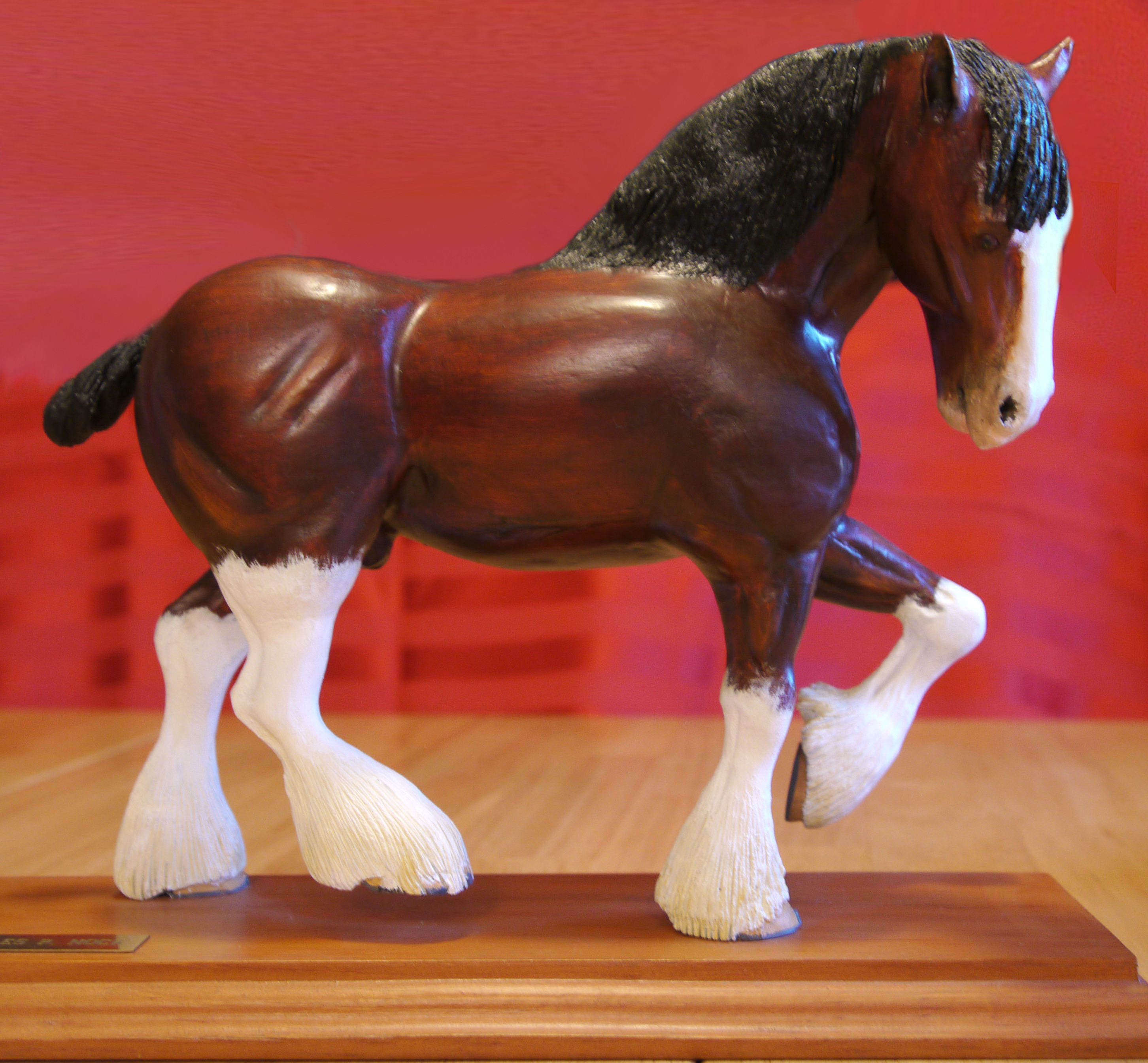 Charles carved in basswood, then stained, painted, varnished and sealed the sculpture. He often carved a specific breed, such as a Clydesdale or Thoroughbred. Several of his works are polychrome, which simply means painted in several colors, other pieces are monochromatic. During his lifetime, he completed approximately 25 sculptures. His principle subject was the horse.