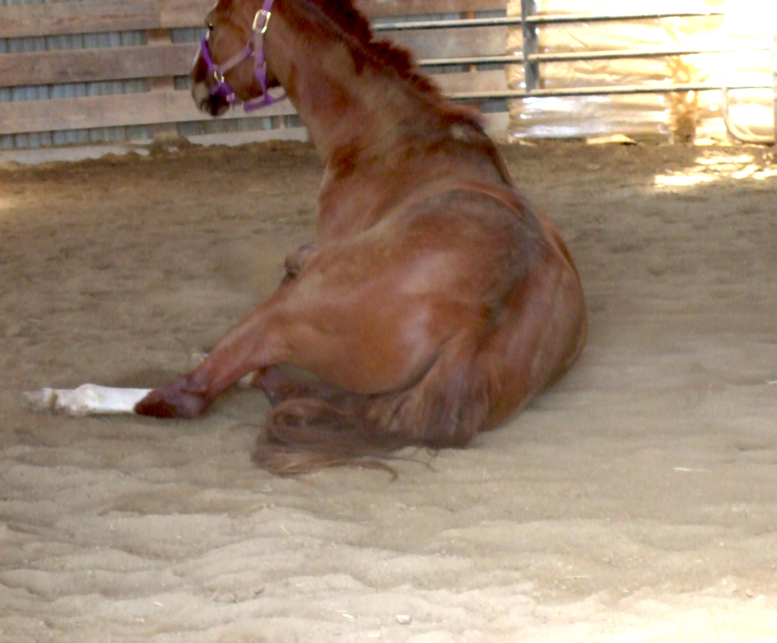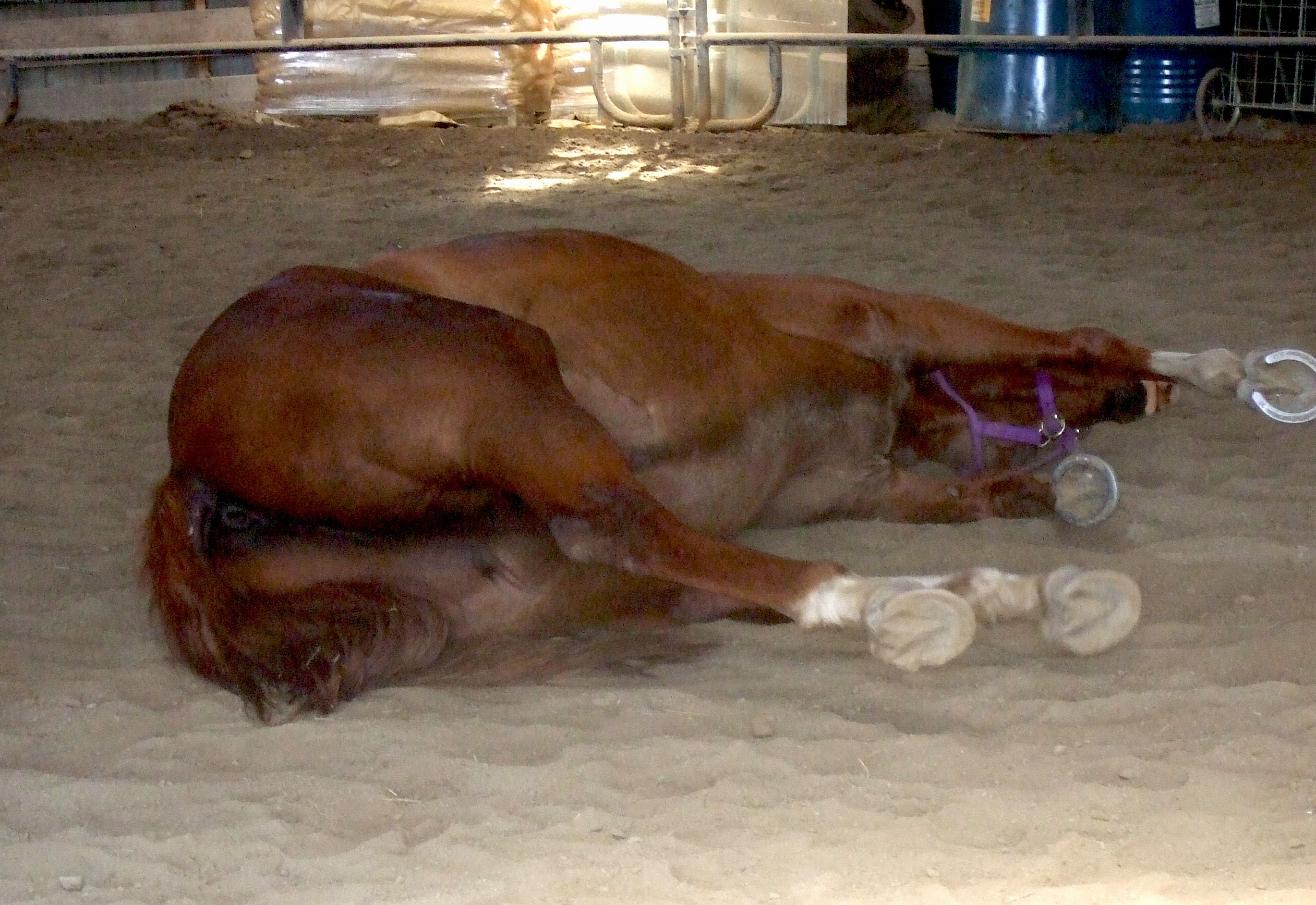 “It’s ok, if you’re fast enough and manage to get the horse to stand up before he starts rolling. But once he goes into the roll, you could find yourself pinned under the horse. People have died when the horse rolled over on them, especially in a western saddle. The saddle horn impales the rider, not to mention being crushed by the weight of the horse,” I said.