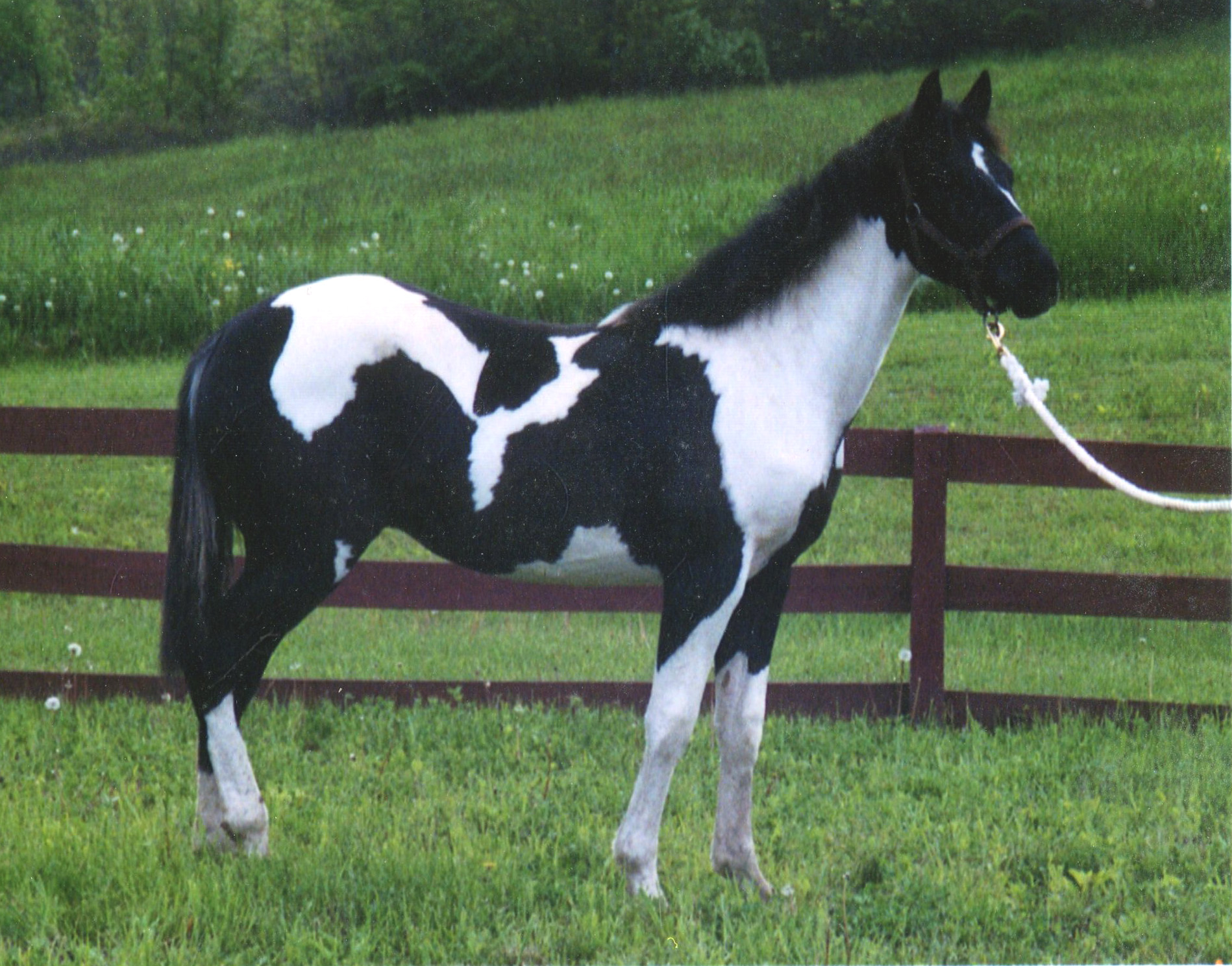 For many years questions whirled around Horse Heaven concerning CJ’s sire. Some of the questions were answered a few months ago, but the exact stallion that sired CJ will probably never be known. Pepper had been rescued from an estate in the remote hills of PA near the Ohio border not far from Youngstown. The owner of the estate had many horses, all different breeds even ponies. He had become ill and died leaving the horses abandoned in the pasture. Marlene felt they had been neglected a very long time. She took her trailer, brought back several Standardbreds to her rescue facility, and within 2 or 3 weeks all the horses found new homes. Marlene didn’t own a stallion; so most likely, Pepper was breed at the estate she was rescued from. According to the horse gestation table at cowboyway.com using CJ’s birth date of 7/11/02, Pepper was exposed to a stallion September 2, 2001; about one month before Connie adopted Pepper. Marlene mentioned to Connie that several horses were euthanized at the estate, including a Walking Horse stallion with a bit of color. Perhaps, the dead stallion had been CJ’s sire.