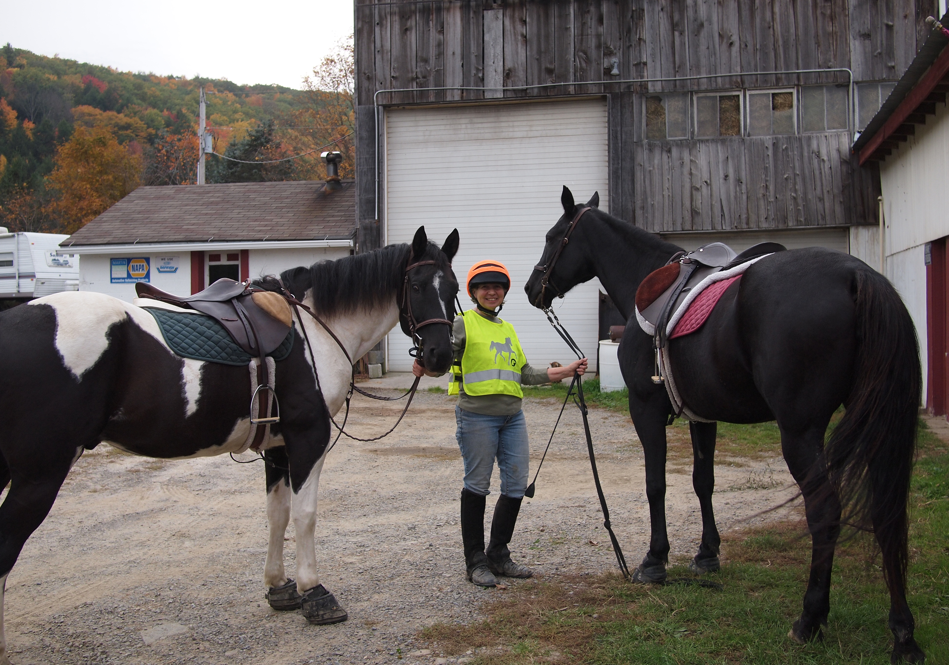 The seasons changed as the earth turned, a couple of years passed before I arrived at Horse Heaven in September of 2009. I signed a lease with Connie and began riding Pepper. The mare hadn’t been ridden for several years, so Anne met me in the barn to help saddle Pepper and show me around, then we rode up to the park. Several times, Anne and I met to ride on crisp autumn days. When we turned the horses out to pasture, CJ walked over to Anne for a neck rub, and then we closed the barn door and went home. Before long most of the leaves fell from the trees to carpet the roadway, the temperature dropped into the 40’s, and Anne pulled Shadow’s shoes for the winter and called it a year.