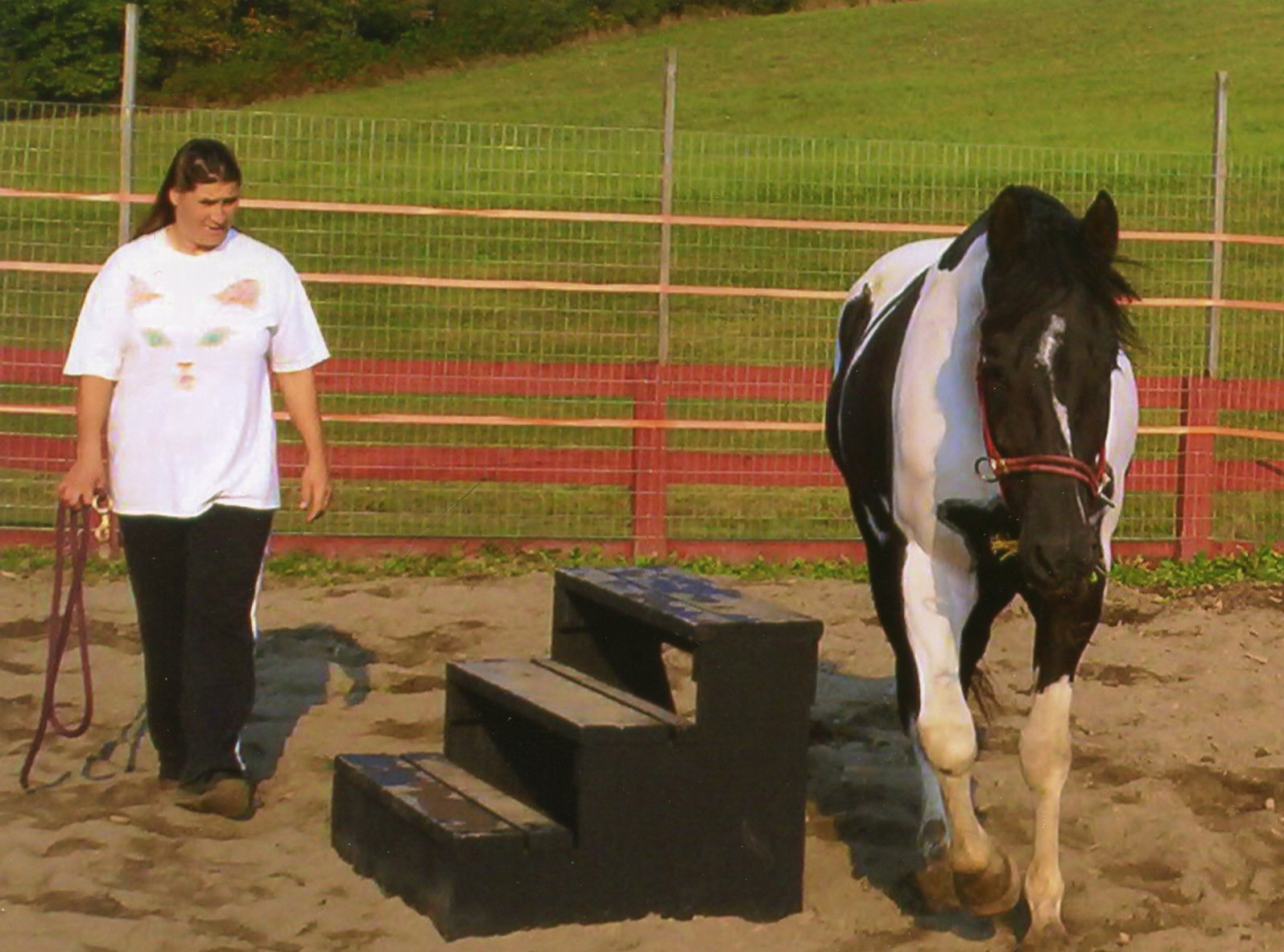 Warm weather came with May and school started for CJ. Donna Horton began lunging him and worked on leading lessons using a rope halter. The halter work proceeded smoothly, but lunging was a different story. CJ learned quickly that if he crossed the circle and turned towards Donna the lunging stopped. She found it hard to make him behave and stopped for the season when the cooler weather came in late fall.