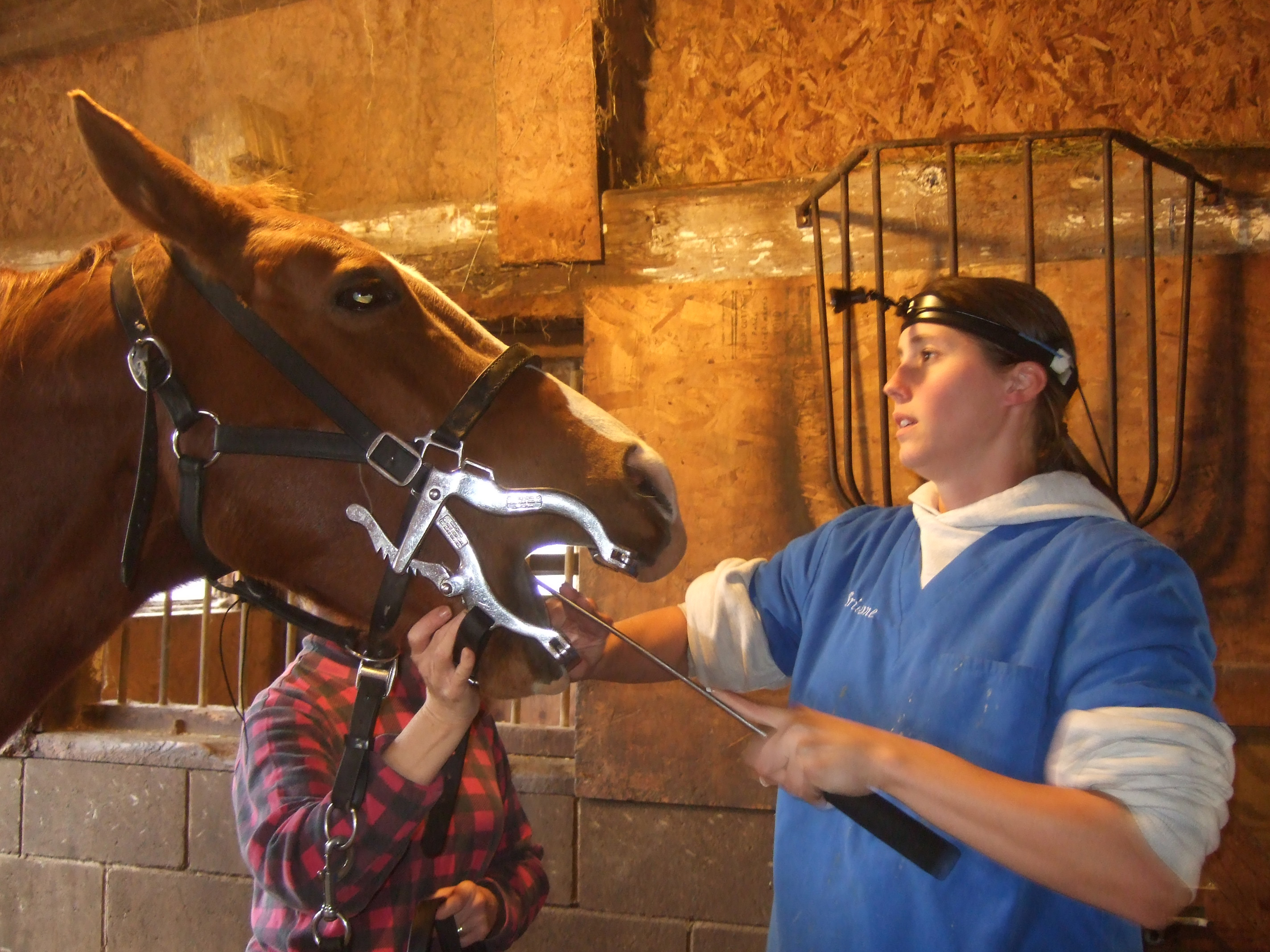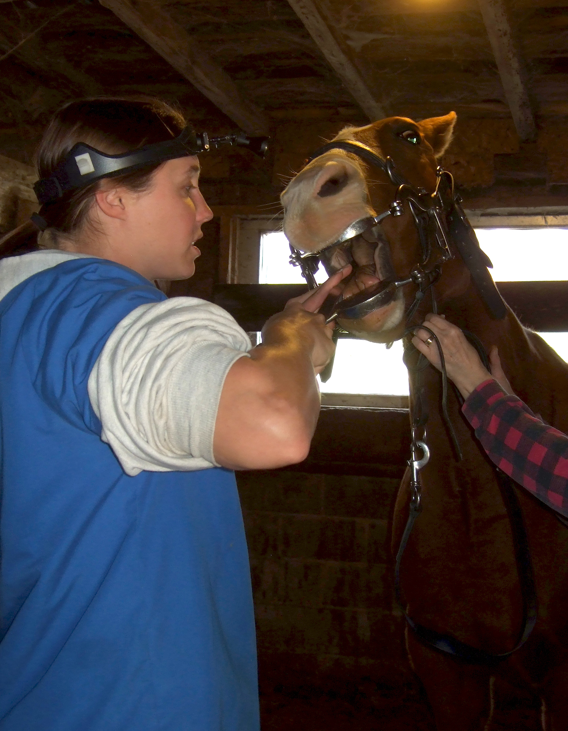 The equine dentist, Brianne Good, grew up owning horses, showing at local 4-H shows as well as riding English and Western at open shows and the Quarter Horse circuit. She attended Morrisville State College in Morrisville NY majoring in Equine Science and Management. In 2005, Brianne apprenticed with Dave Brown an equine dentist, and attended the American School of Equine Dentistry in Ocala, FL. She travels throughout Northeastern US and occasionally as far as California to perform her work. Fortunately for horse owners in Northeastern PA, she lives in Towanda; a short drive from Ballentine’s Horse Heaven.
