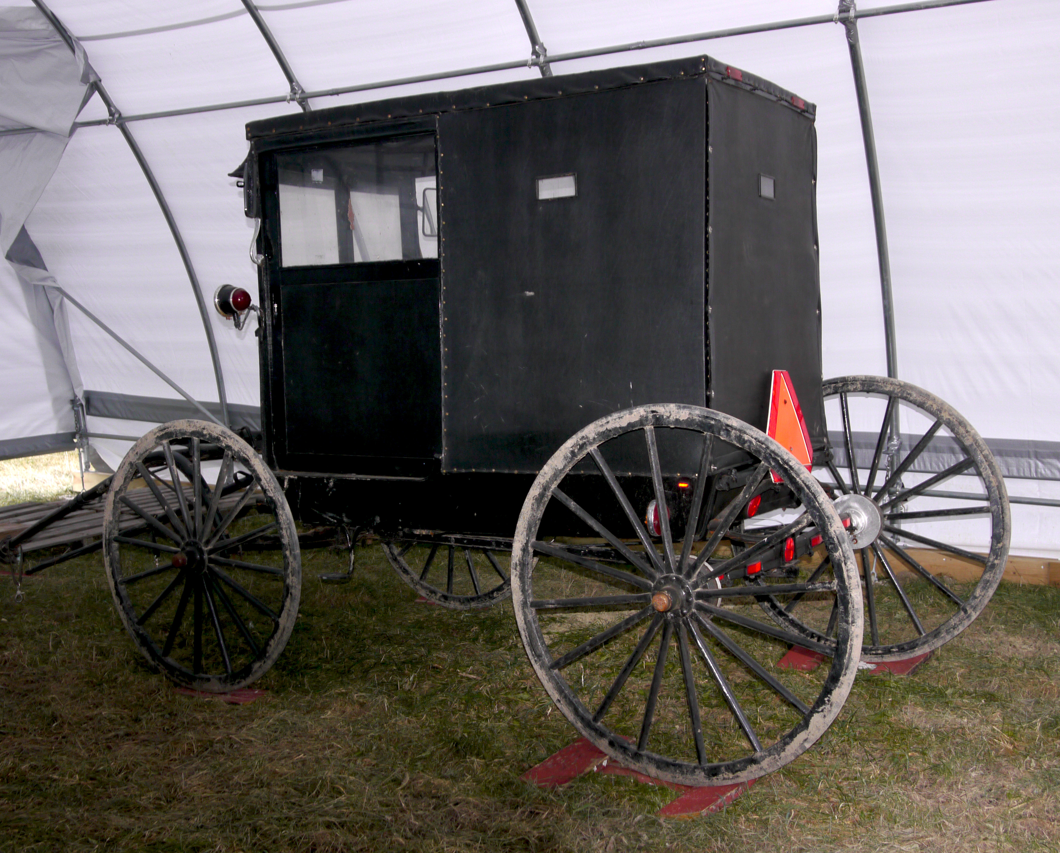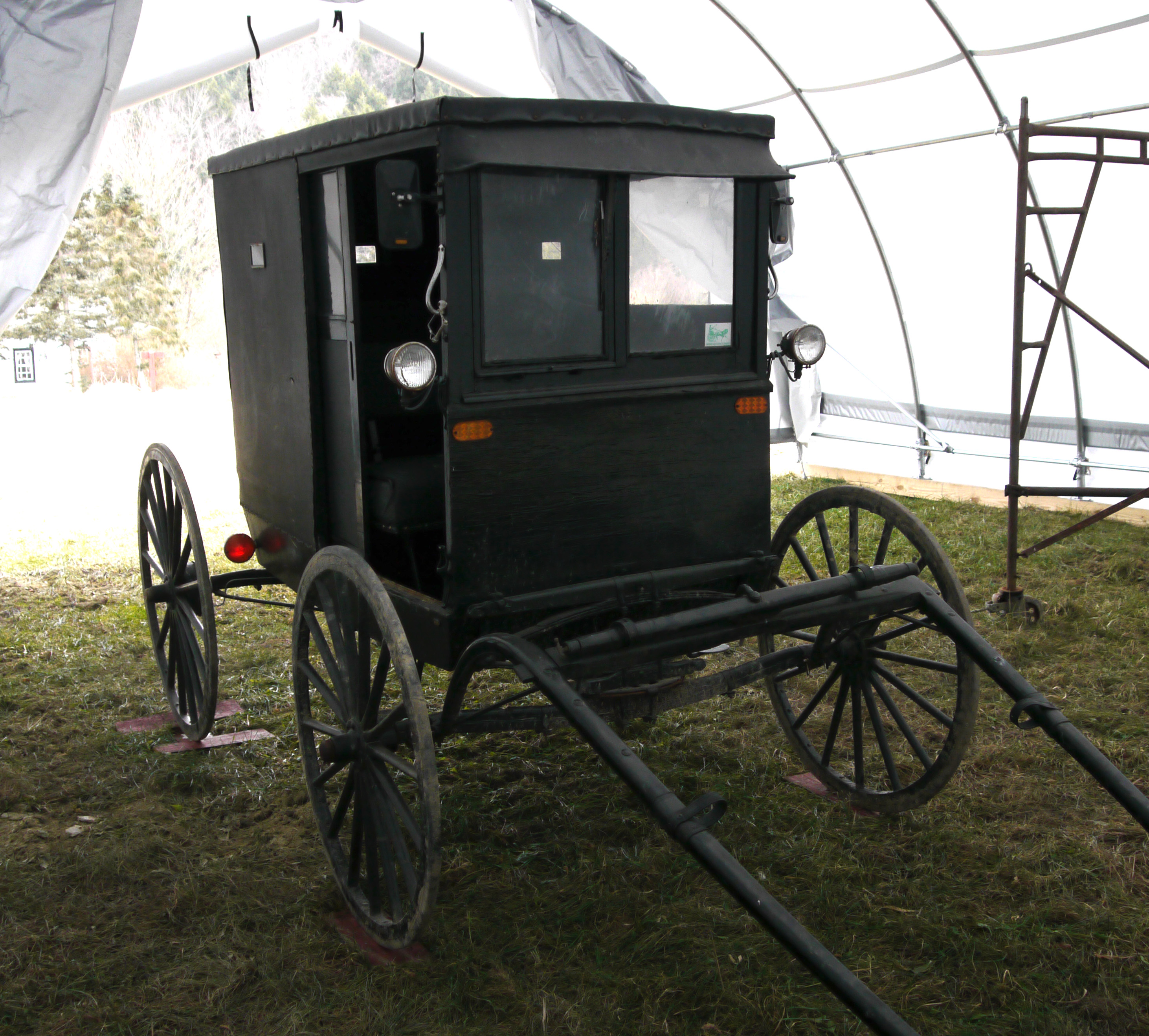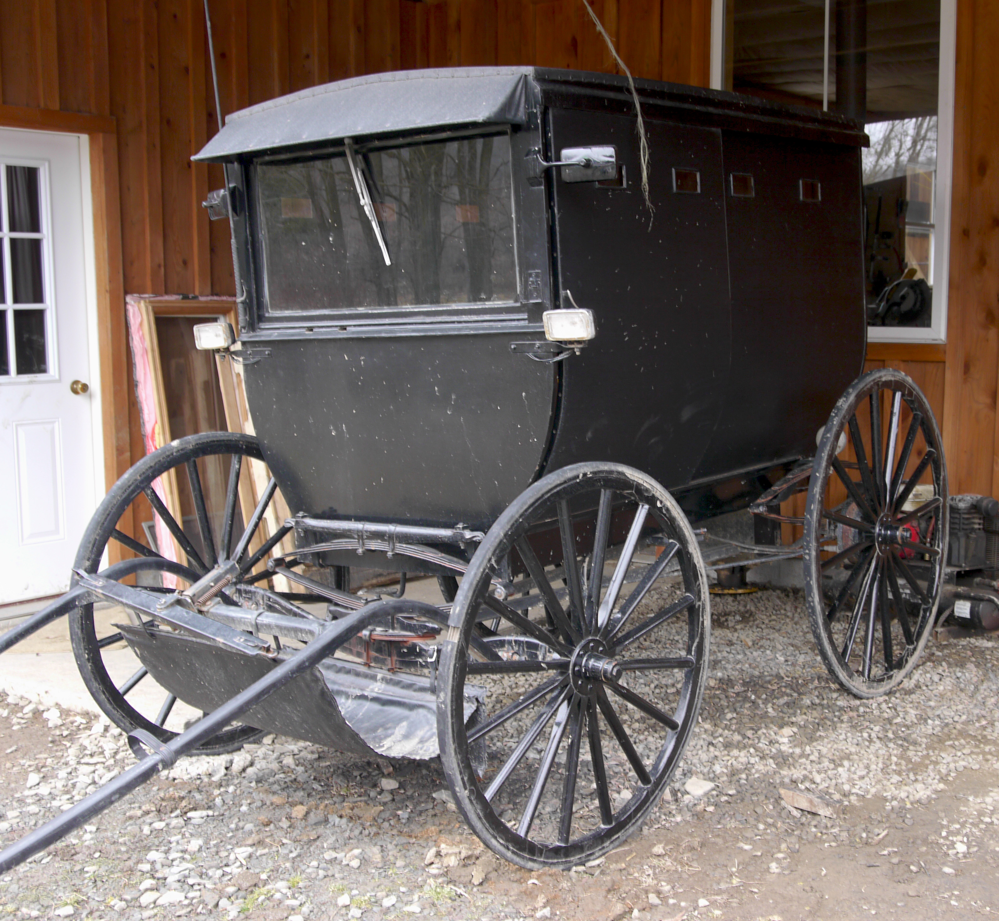 “You’re carriages don’t have a canvas back that snaps off?” John asked the Amish craftsman.