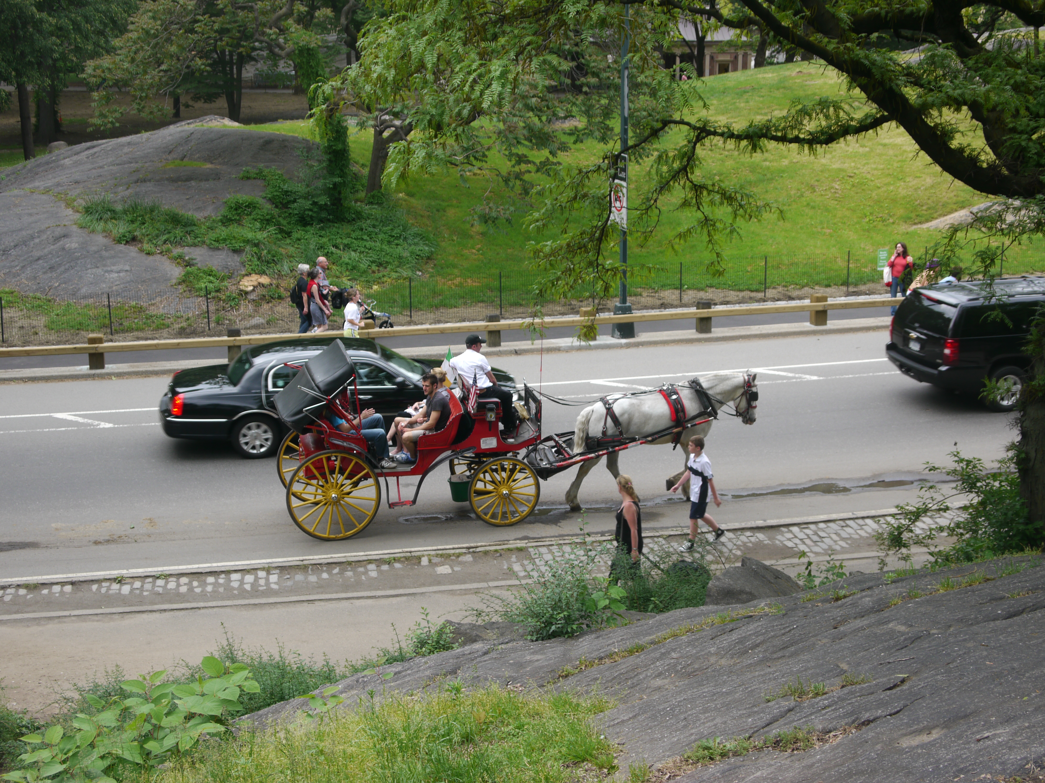 The bicycle carts, taxis and cars drove past as we looked up at the huge rocks worn by years of foot traffic. The ride was leisurely and Paul pointed out many sites where movies were filmed, Wollman Ice Skating Rink, Sheep Meadow, and the Central Park Carousal. We talked about horses as the sound of Dream’s hooves clip clopped on the asphalt.