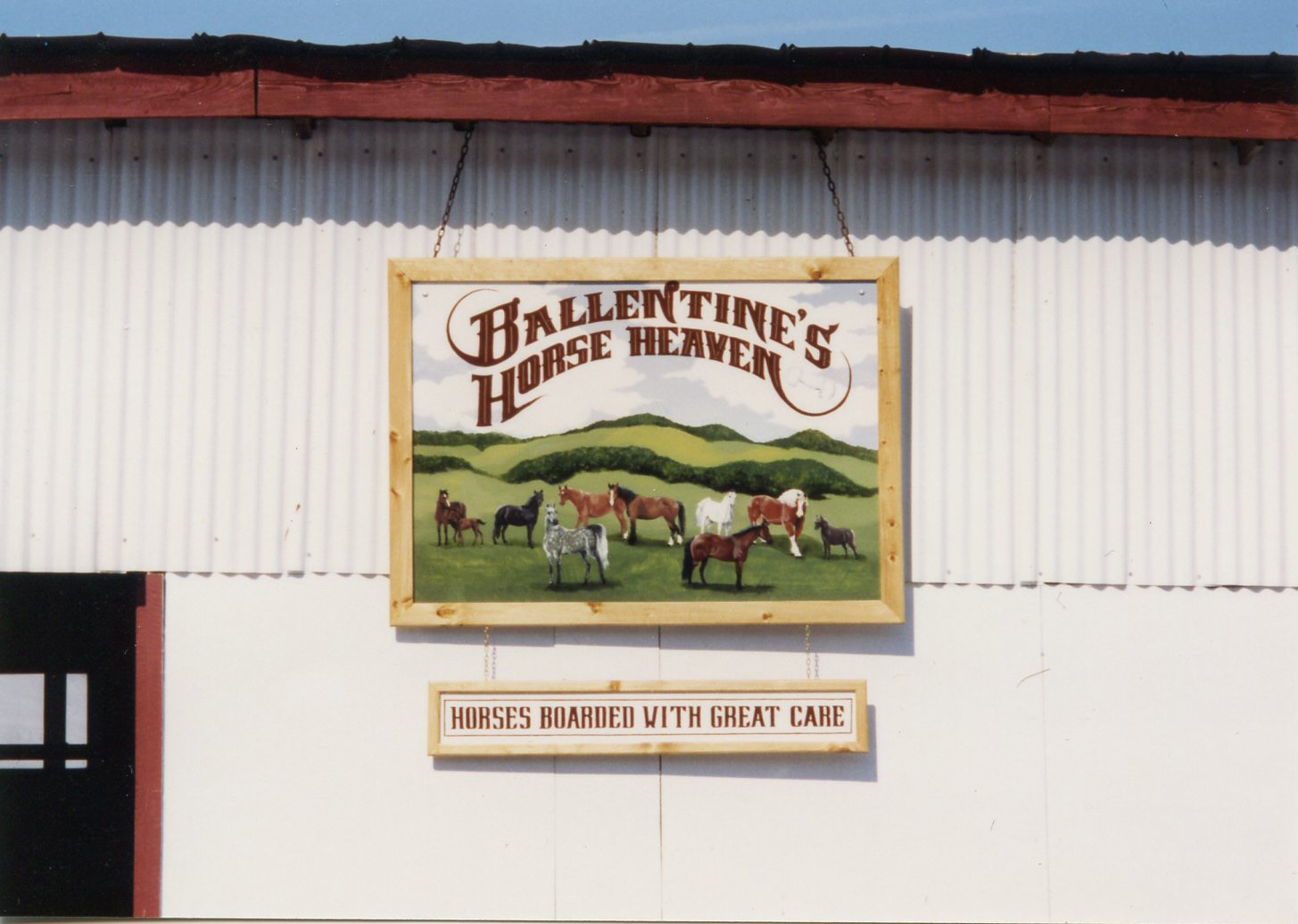 One day Sandy brought Connie a surprise gift; a sign painted by Lynn O’Brian. The sign read ‘Ballentine’s Horse Heaven’ under the sign hung a smaller sign that read ‘Horses Boarded with Great Care’. A large part of the farm was slowly turning into a riding stable.
