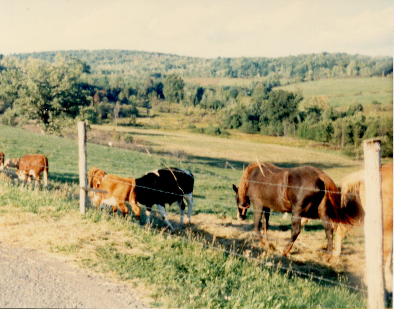 For many years before moving to Athens, PA, Sandy and her husband Bruce lived in the artist district of Soho in New York City. One pleasant summer day Sandy brought a friend from the city to see the farm. The thin woman fell in love with one of Connie’s Yorkshire piglets. The young playwright, Liz Swados, bought the pig from Connie. She named the piglet Snowball and arranged for board in one of the stalls in the barn. The piglet grew and grew. A pseudo-rabies virus spread throughout the valley requiring all pigs to be tested. Economically it didn’t make sense to keep the pigs so they were sold to the slaughter house. The only pig that was left was Snowball. Snowball was a very happy, friendly pig greeting everyone who entered the barn. The pig ate out of people’s hands, lived a long cheerful life and finally died of old age.