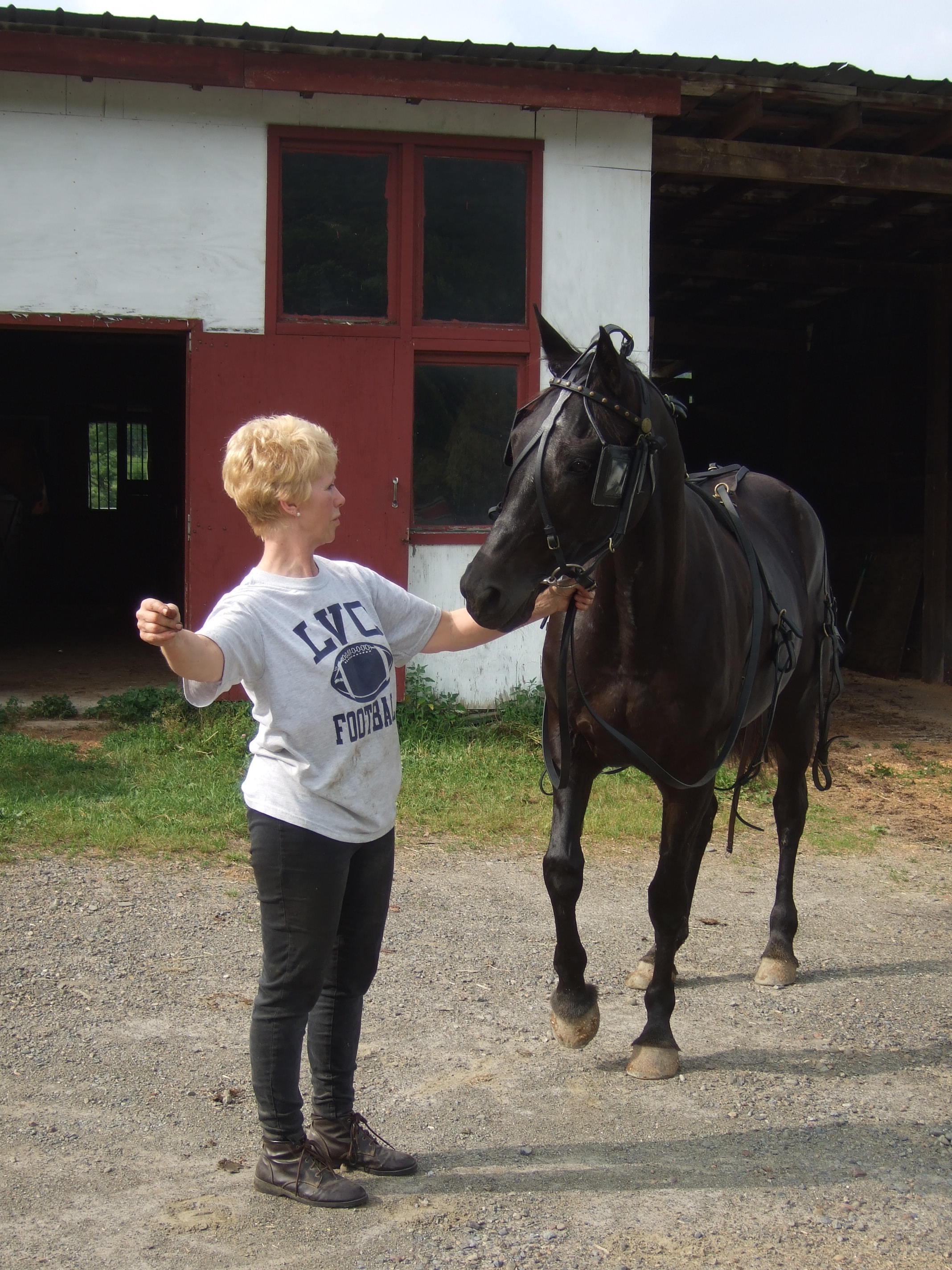 When we reached the front of the barn, Donna again checked the harness, tightened the equipment and double-checked that everything was on correctly.