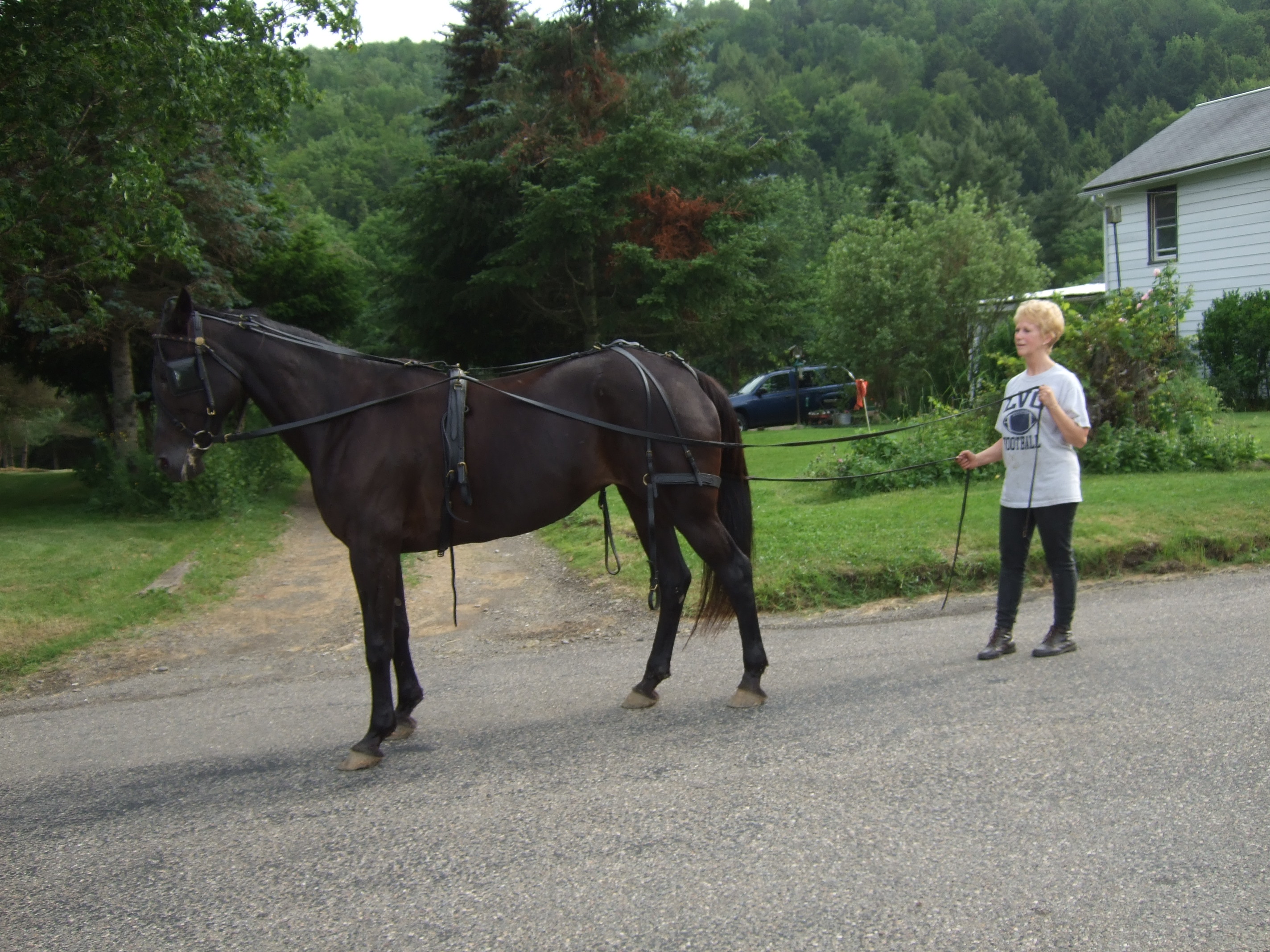 “I like to go slow. Pepper hasn’t been harnessed and driven for about eight years,” said Donna. “It’s better to go over the basics with her before we get into the cart.”