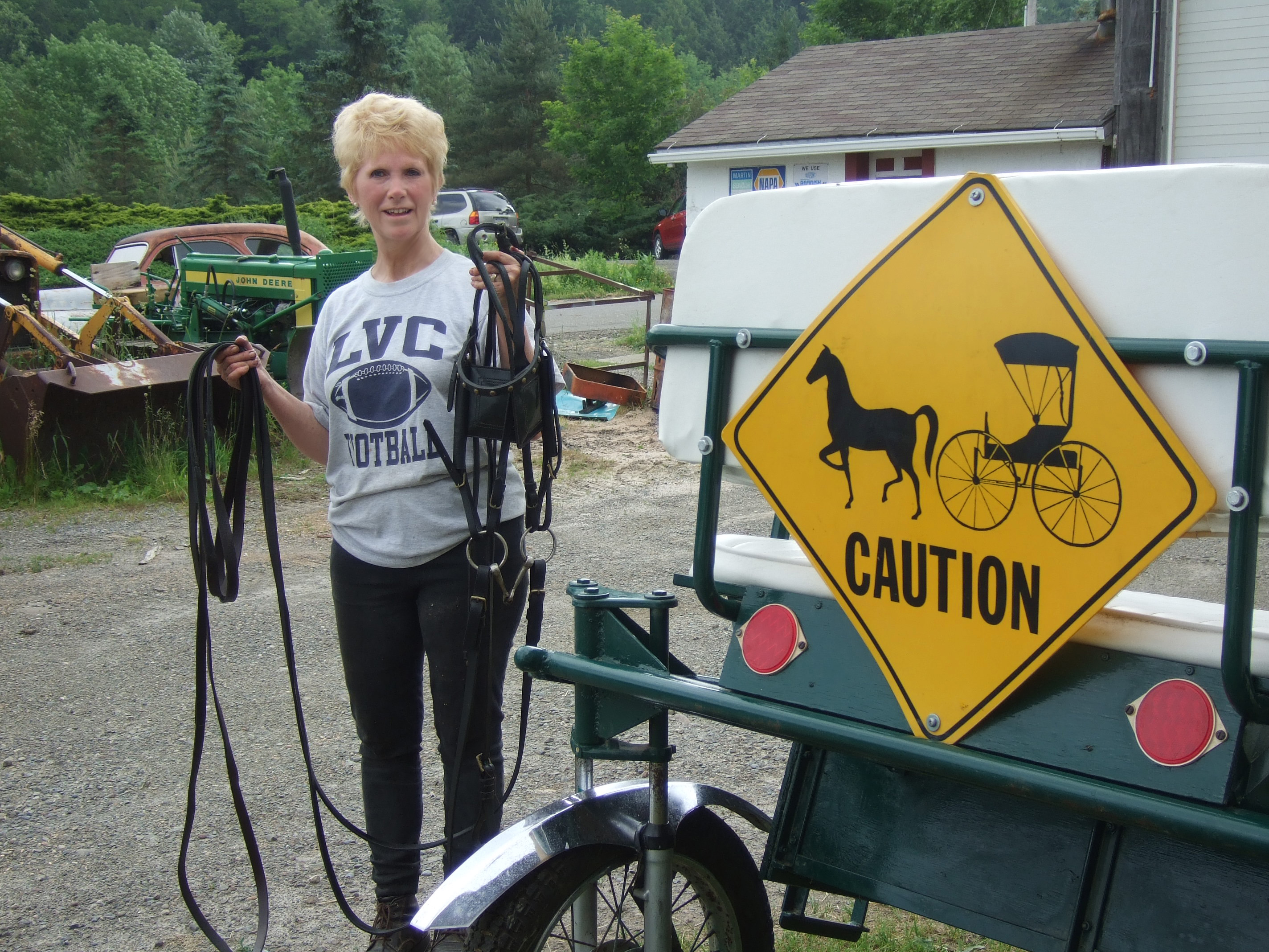 “I’m going to climb in,” said Donna. She quickly climbed into the cart, took the reins and off we went up the road.