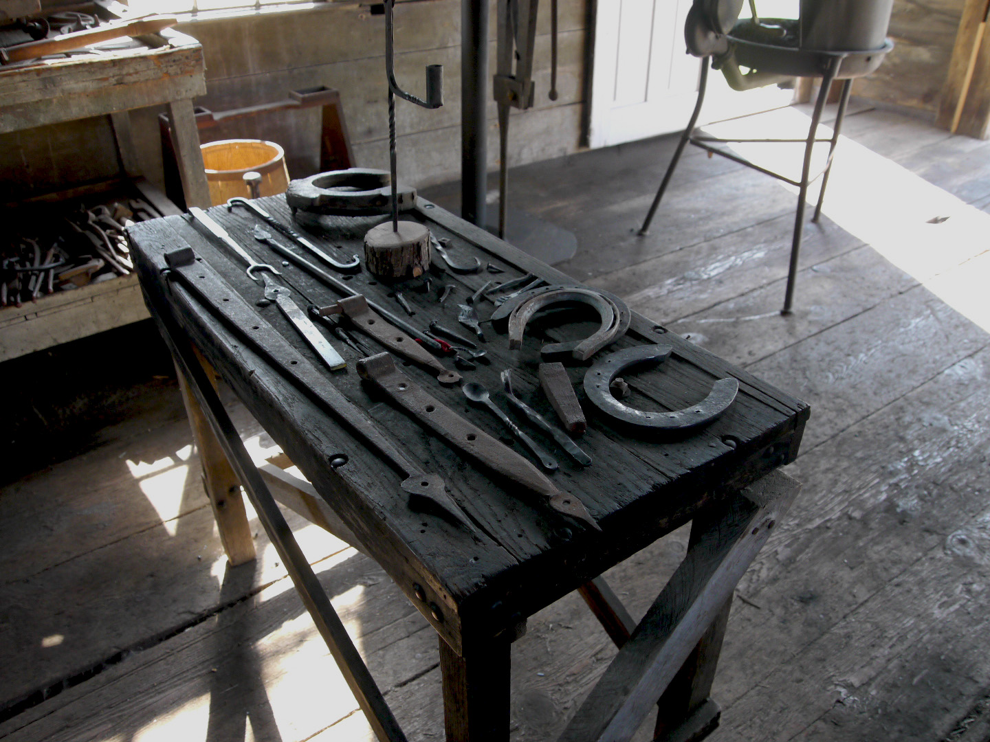 “A wheelwright made and repaired all parts of the buggy wheel. The blacksmith often worked for a wheelwright or did farrier work. Cooley did some rim repair. Wheelwright equipment was found in his shop when the museum purchased it,” replied Leon.
