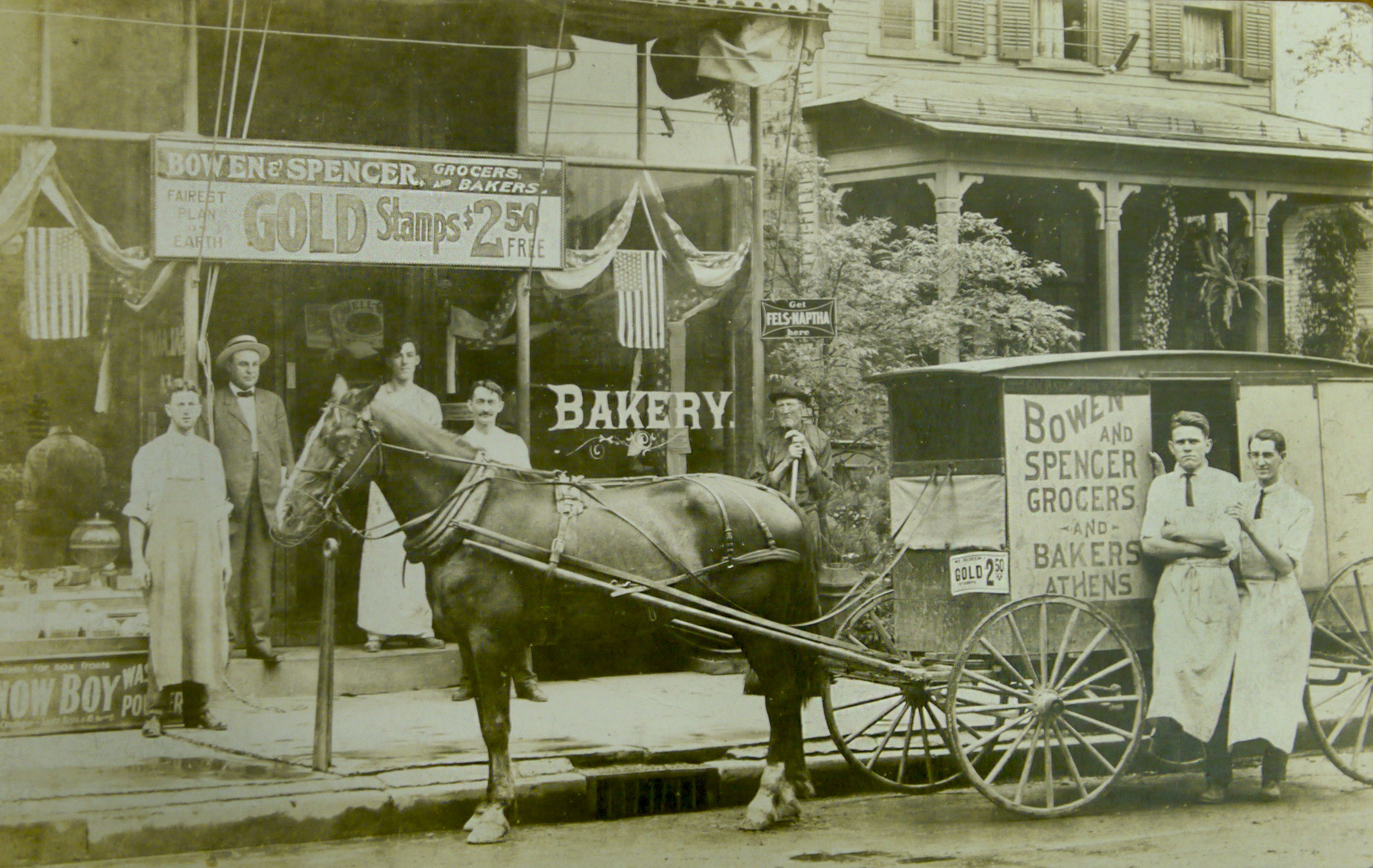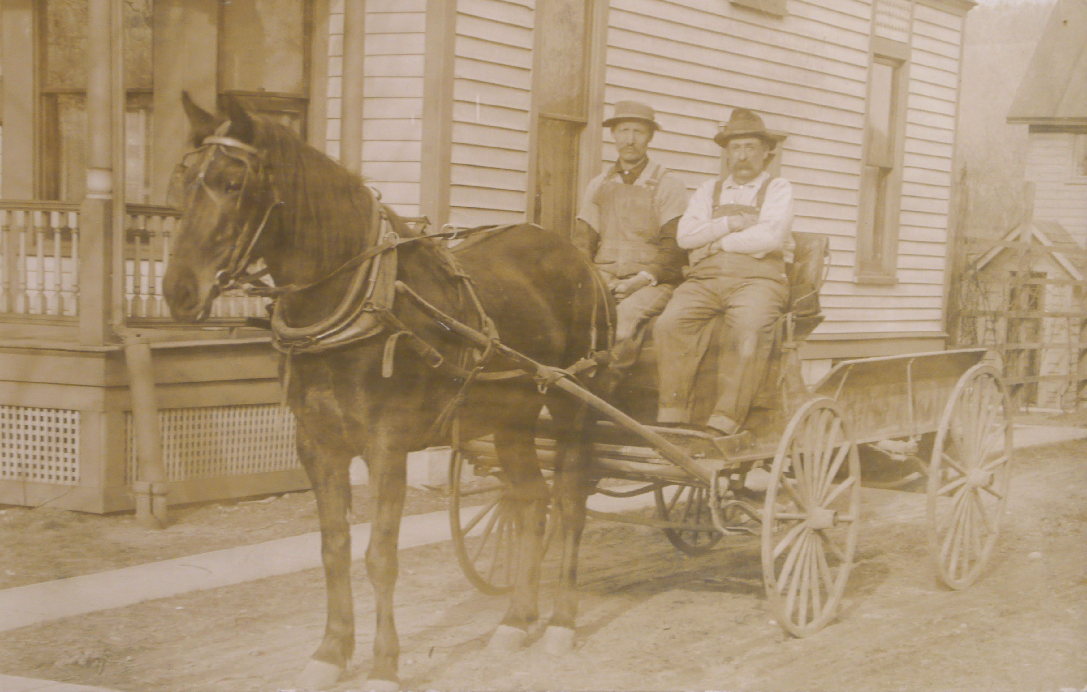 Maddie pulled from the museum archives several long cardboard boxes. Carefully, she opened each folder and we examined the photos and postcards inside. Sure enough there was a fire engine pulled by horses, several pictures of blacksmith shops, a grocery delivery wagon, and several other interesting photos with horses in downtown Athens. Unfortunately, there wasn’t much information attached to the photographs.