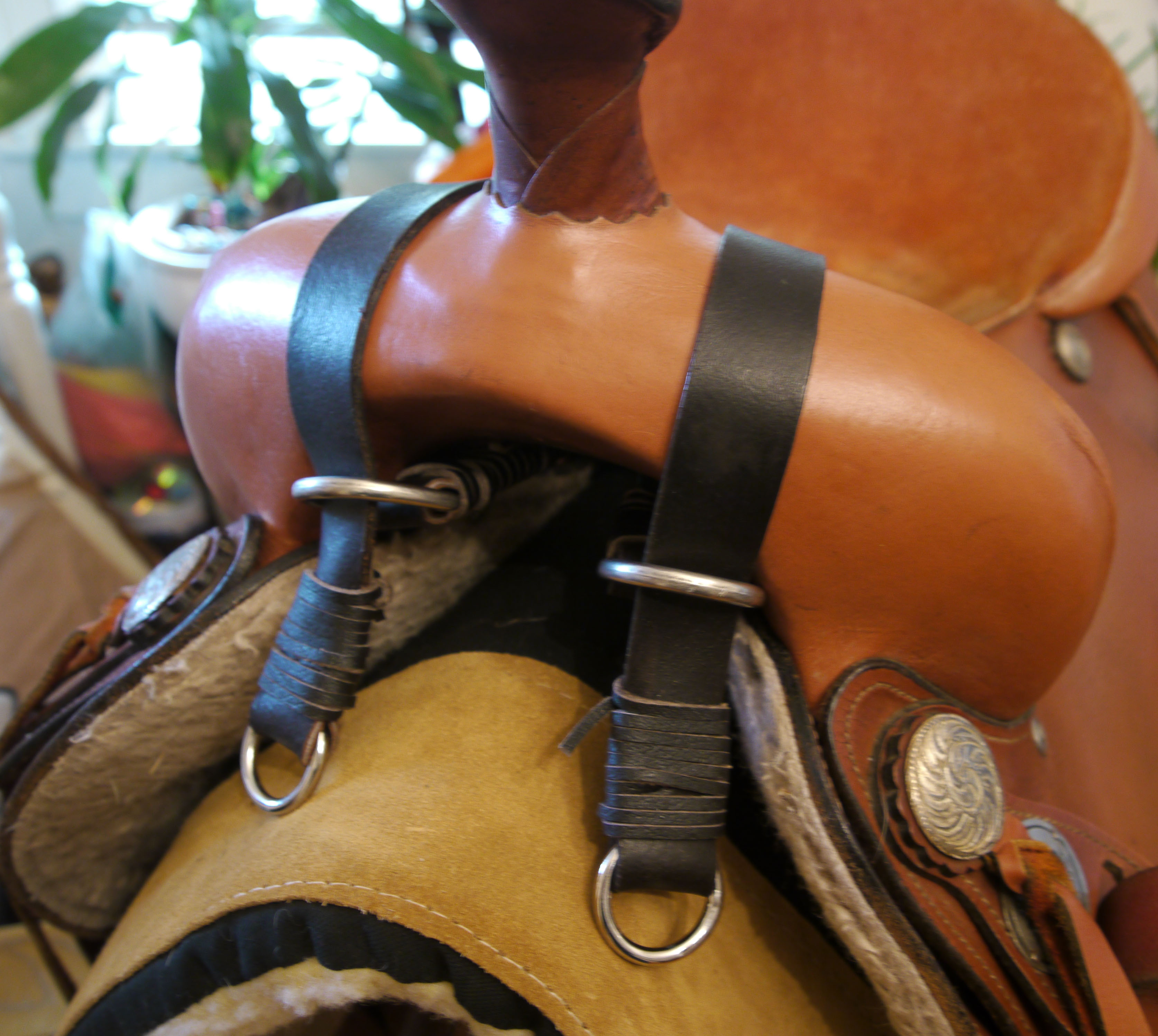 One word of caution; make sure that the rings and leather are strong enough for the job. If you decide to use an old belt like I did make sure the belt is real leather and thick enough to be used on a horse. The same is true of the rings. The last thing you want is for the strap to break, so like all equipment, check it before you saddle up. Also, if you can’t find a piece of leather to use ask your saddle repairman or shoe repairman. They might have a piece of leather that will work and can sew the ends for you.