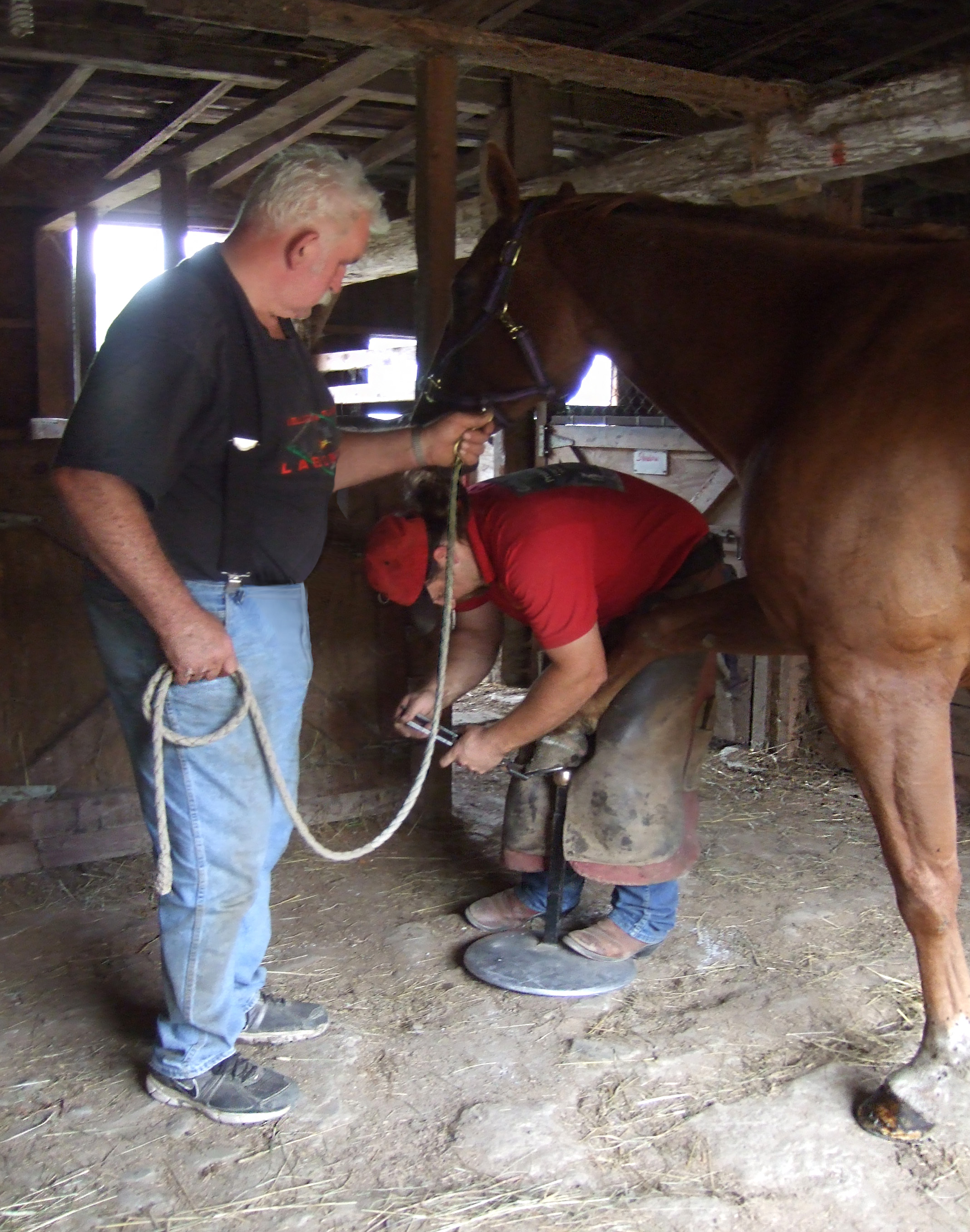 If I have a problem with one of the horses, Gene is the one I ask for advice. He was born into a horse family. His parents owned and loved Appaloosas. They put him on their horses when he was a baby, and as a result, horseback riding formed some of his earliest, childhood memories. When Gene reached 14 the horses were sold. Like so many people, they found it financially hard to keep them. However, that didn’t stop Gene from riding. A neighbor friend still had a couple of horses so he rode with his friend until he graduated from high school and entered the Marine Corp. In the service he had time to think about what he wanted to do with the rest of his life. He knew it had something to do with horses and he decided to become a farrier.