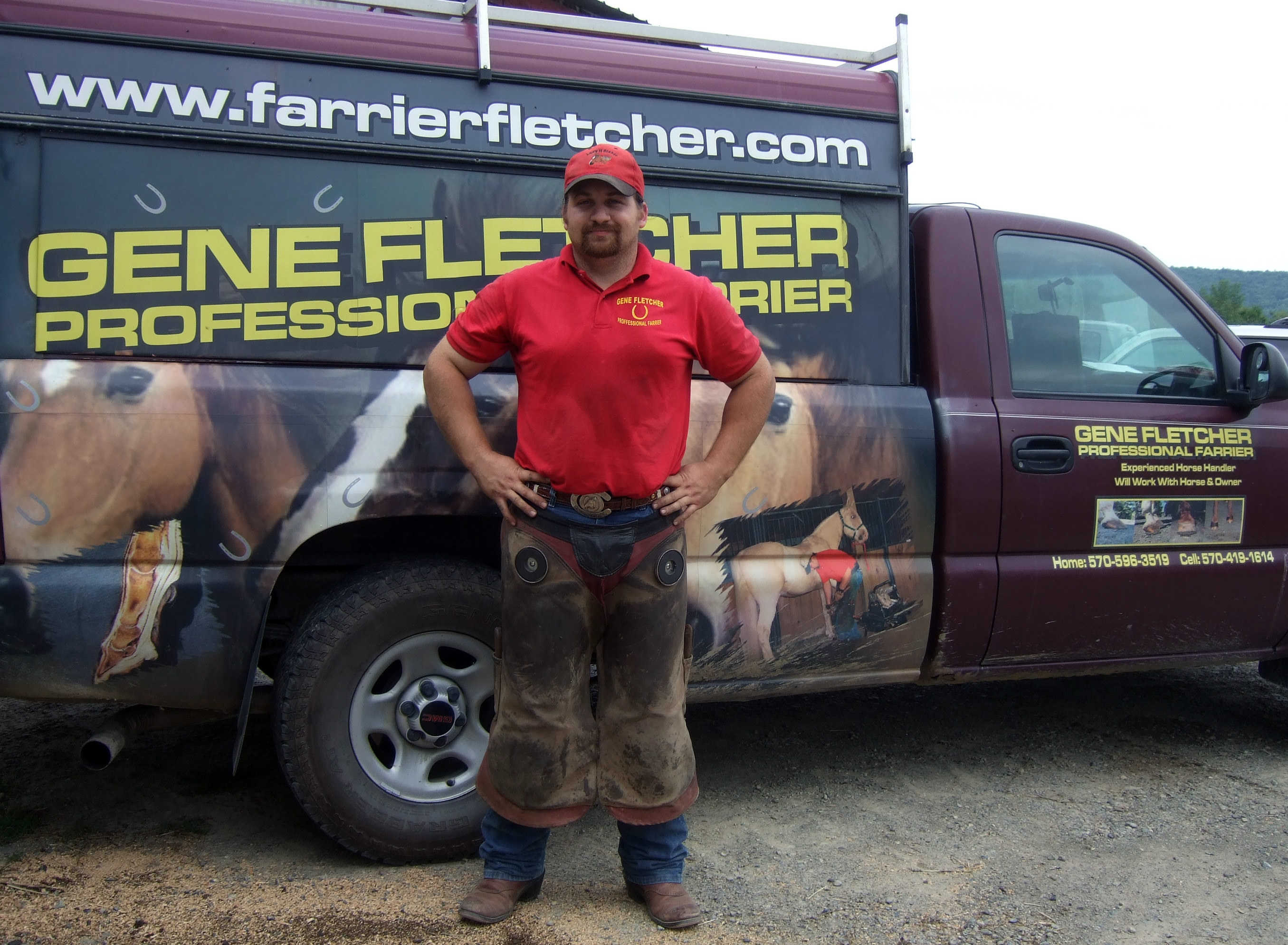 Gene attended Meredith Manor International Equestrian Center in Waverly, WV. His first farrier position was working as an apprentice in West Virginia for a few months. The farrier he worked for didn’t share Gene’s basic philosophy about horses which is “listen to the horse” and through non-verbal communication develop a working relationship with the animal. Gene parted ways with the West Virginia farrier when the man had trouble catching his horse. The horse kept running away from him, so when the man finally caught the horse he tied it to a tree for two days to teach the horse a lesson. Gene decided it was time to start out on his own and headed back to Pennsylvania.